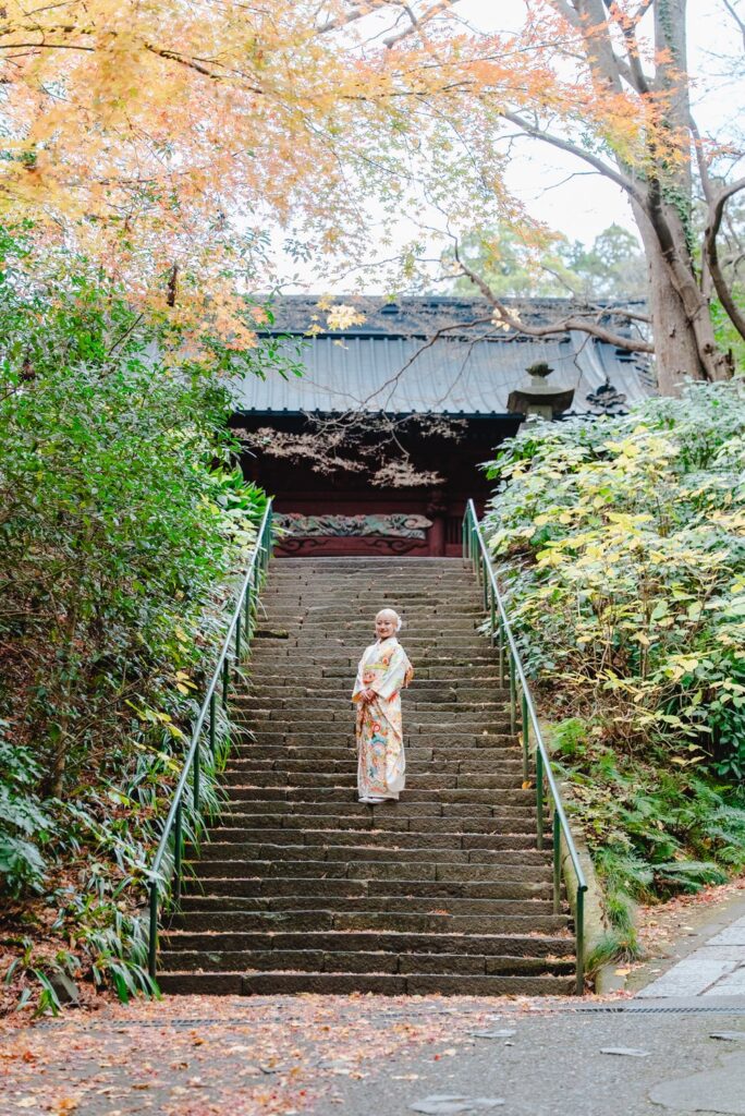 正直なところ、撮影前は少し心配でした。「伝統的な日本の着物に、あの派手な金髪が合うのだろうか?」と。古都・鎌倉の厳かな雰囲気に、浮いてしまうのではないかという親心(余計なお世話?)があったのです。