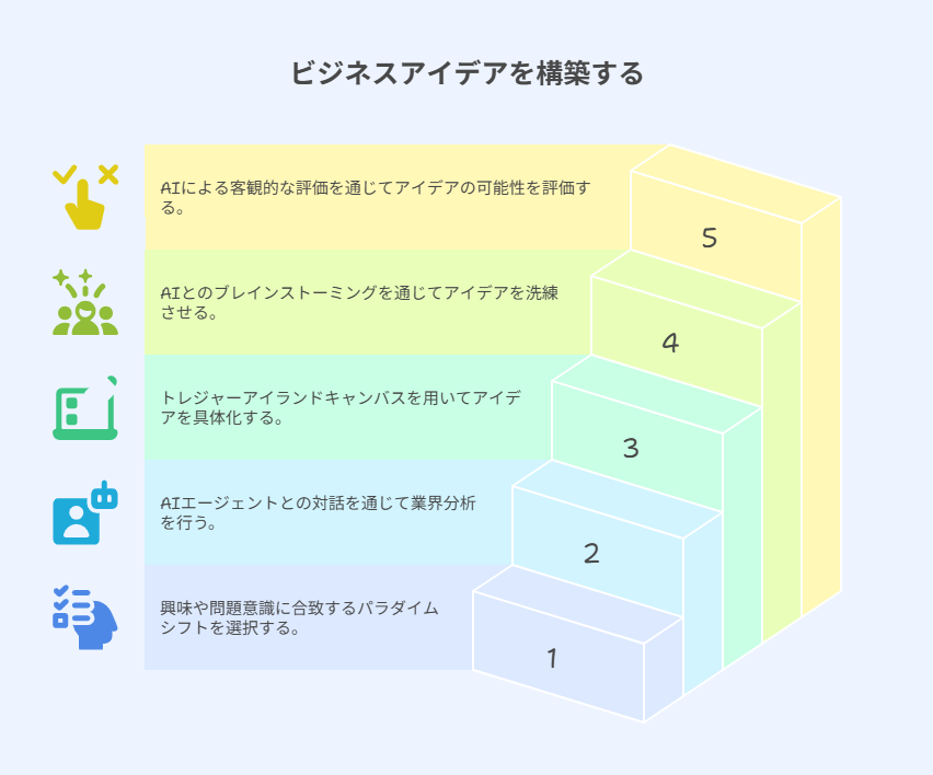 専用アプリでアイデアをステップ構築する具体的なプロセス