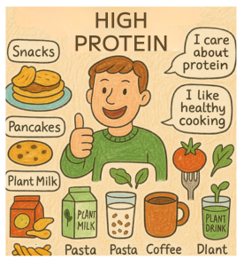 単に量を添加するだけでなく、植物性プロテイン(エンドウ豆、米、ナッツ類など)の活用や、味や食感の向上にも各社が注力しており、より美味しく、より手軽にタンパク質を摂取できる選択肢が広がっています。