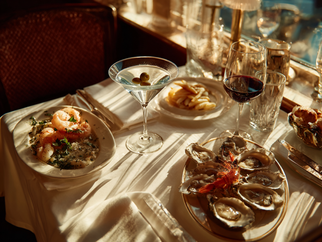 マティーニ、オールド・ファッションド、マルガリータあたりが定番の三大カクテルです。そしてメインの料理が運ばれてきたら、赤ワインをグラスで一杯。それで終わりです。