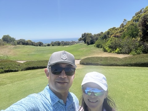一泊して迎えた翌朝は、妻と一緒にゴルフへ。昨日スコットさんと回ったのとは別の「オーシャン・ノース・コース」を二人でラウンド。共通の趣味をともに楽しめる幸せを、改めて噛みしめました。