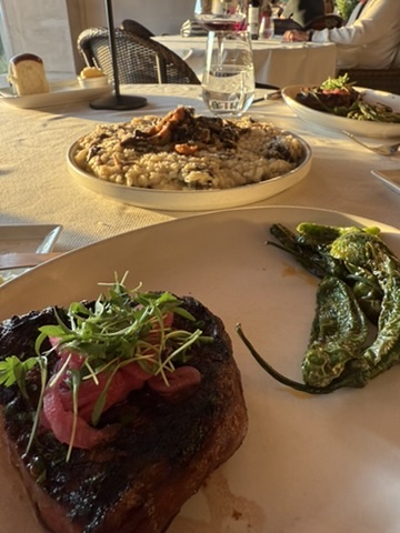 濃厚なチーズの香りとキノコの食感が織りなす絶妙なハーモニー。妻も「美味しい!」と目を輝かせていました。メインに頼んだリブアイステーキも柔らかくジューシーで、大満足のディナーでした。